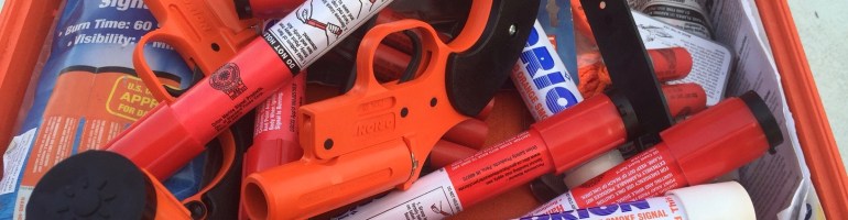 Some of the emergency signaling pyrotechnics seized by Blacktip Island police after Thursday night’s signal-flare shootout. (photo courtesy of Raphael Marquette)